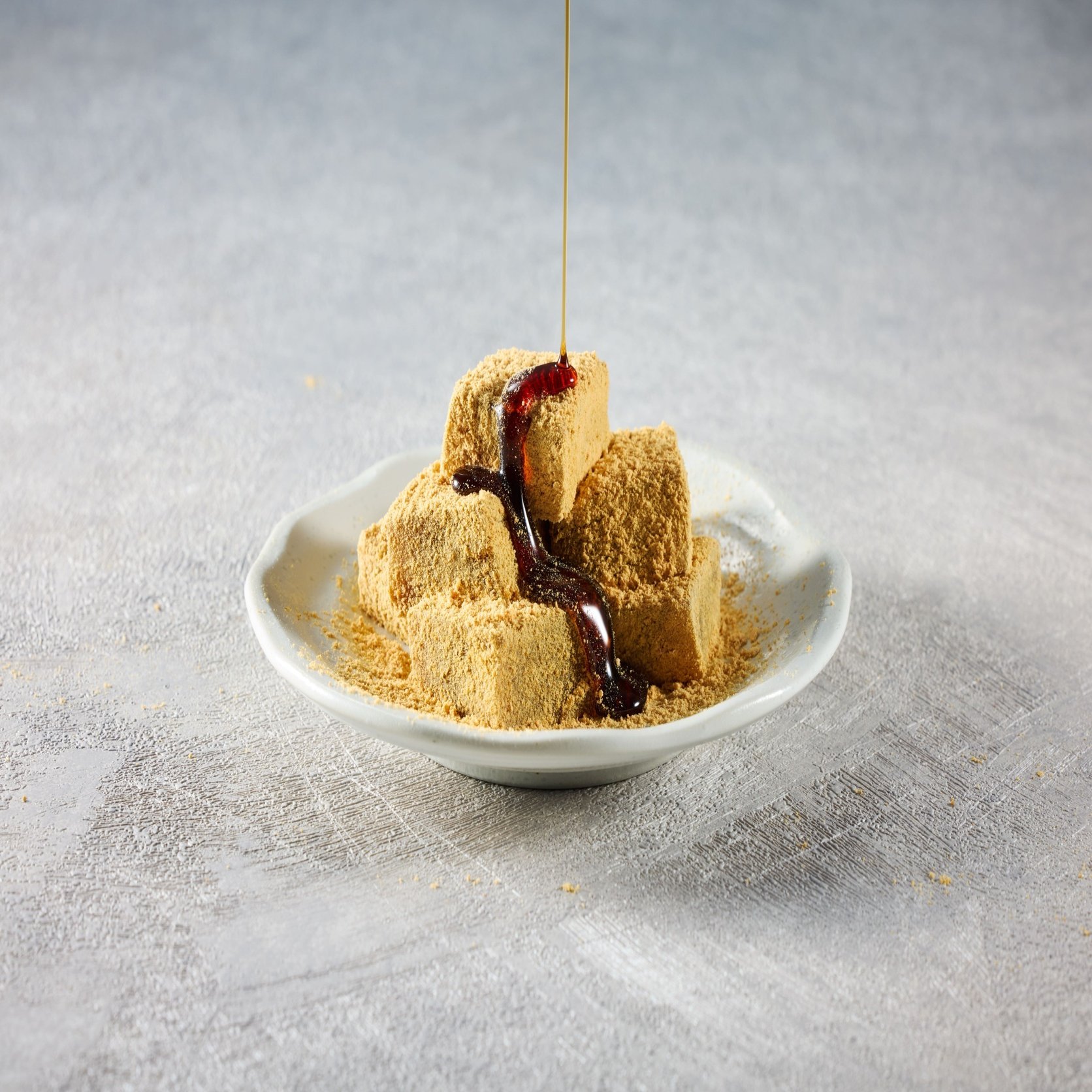 多くの人がイメージする「わらび餅」は、スーパーなどで数百円で売っている、プルプルしているゼリー状で、きな粉などをかけて味付けするサッパリした薄味のものだと思いますが、