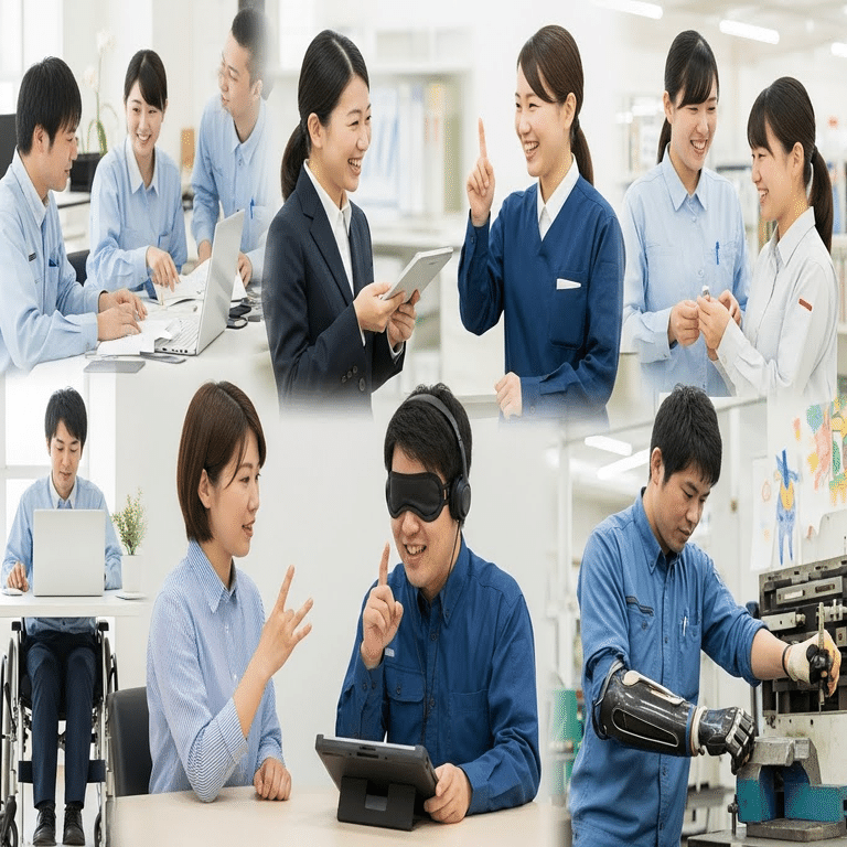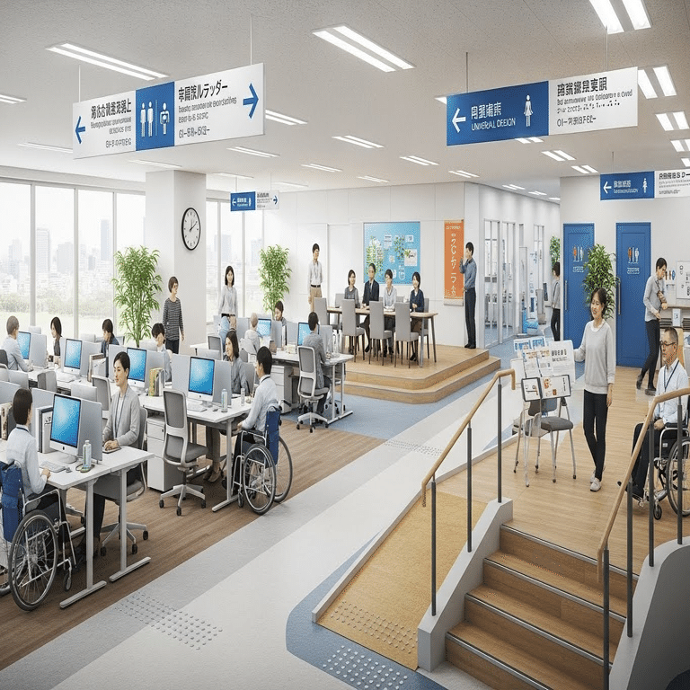 身体障害者の方の場合は、主に、ユニバーサルデザインの職場環境や道具を整備することが中心になります。