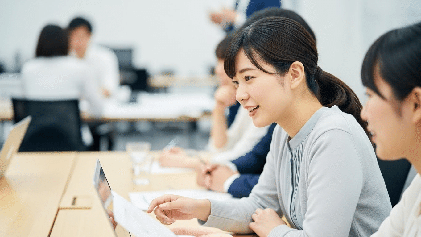 グループワークの際、話すのが苦手で何もできないでいる隣の人を気遣い、声をかけ、手伝ってあげるシーンがありました。
